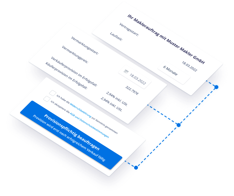 Nutzen Sie im Akquisegespräch den Deal-Funnel, um den Eigentümer Schritt-für-Schritt durch den Verkauf zu begleiten. Den Auftrag erhalten Sie dann per One-Click über WhatsApp oder SMS.